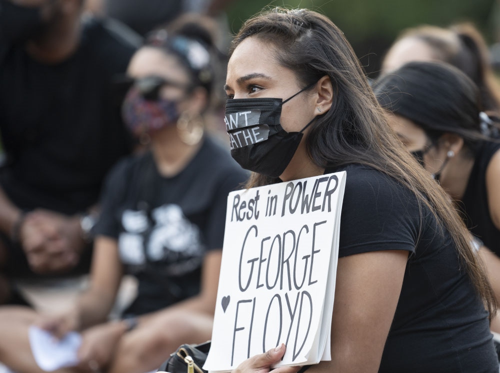 5月25日,人們在美國華盛頓白宮附近參加悼念喬治·弗洛伊德的集會。當(dāng)日是非洲裔美國人弗洛伊德遭明尼蘇達(dá)州白人警察“跪頸”執(zhí)法致死一周年,美國多地舉行悼念活動(dòng)。新華社記者劉杰攝