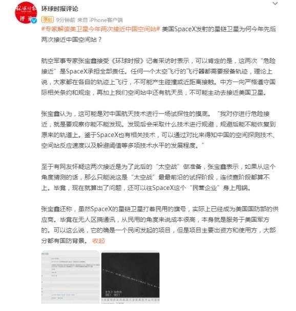 #專家解讀美衛(wèi)星今年兩次接近中國空間站# 美國SpaceX發(fā)射的星鏈衛(wèi)星為何今年先后兩次接近中國空間站?