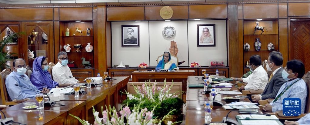 9月4日,在孟加拉國達(dá)卡,孟加拉國總理哈西娜(中)出席孟中友誼八橋啟用儀式。新華社發(fā)