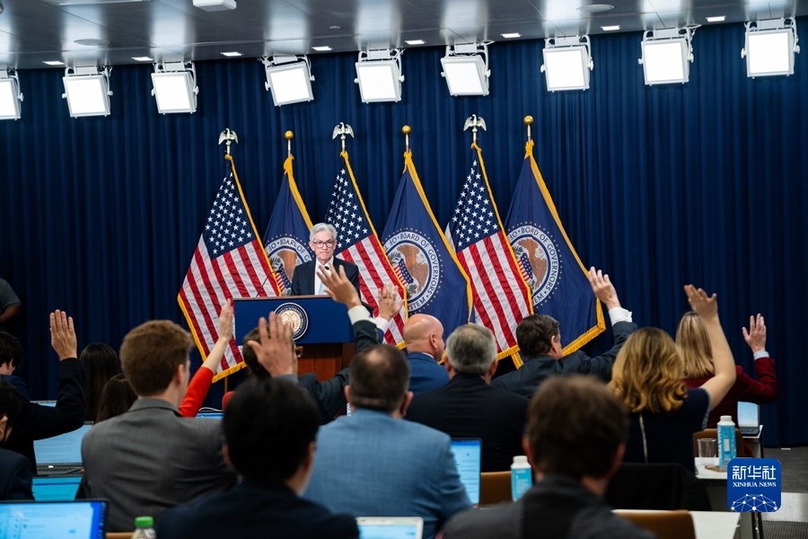 11月2日,美國(guó)聯(lián)邦儲(chǔ)備委員會(huì)主席鮑威爾在華盛頓出席新聞發(fā)布會(huì)。新華社記者劉杰攝