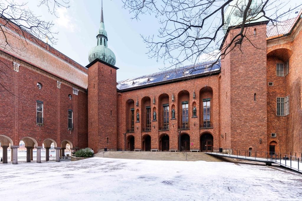 這是在瑞典首都斯德哥爾摩市政廳庭院內(nèi)拍攝的雪景。新華社發(fā)(魏學超攝)