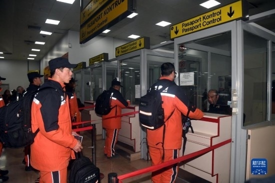 2月16日,中國救援隊隊員在土耳其阿達(dá)納國際機(jī)場辦理乘機(jī)手續(xù)。
