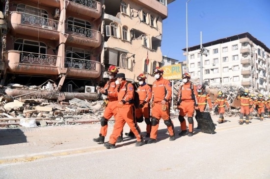 2月14日,中國(guó)救援隊(duì)與中國(guó)香港特區(qū)救援隊(duì)聯(lián)合編組在土耳其哈塔伊省安塔基亞市開(kāi)展救援工作。