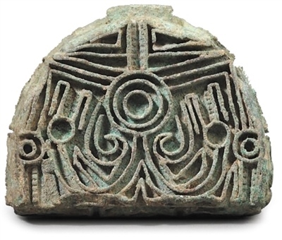 5號展廳展出小巧而精美的王冠、徽章、鼻環(huán)、耳罩等,這些曾經(jīng)象征著身份地位的金屬器物今天依然散發(fā)著光彩。它們大多來自奇穆文明時期(公元900年—1470年)。這一時期,金、銀、銅器的制作技術(shù)達(dá)到秘魯古代的最高水平。工匠將焊接法、失蠟法、錘金箔、鍍金、貼金等復(fù)雜技術(shù)運用得十分巧妙。