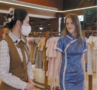安娜是一名來自羅馬尼亞的留學(xué)生,她對(duì)中國(guó)傳統(tǒng)服裝旗袍充滿興趣。安娜說:“中國(guó)是有著5000多年悠久文化的文明古國(guó),很多傳統(tǒng)文化都被保護(hù)和傳承得特別好。我覺得旗袍不只是一種服飾,它背后有厚重的歷史。希望以后有機(jī)會(huì)參加旗袍文化節(jié)的活動(dòng),可以多了解一下旗袍的歷史。我希望嘗試各種旗袍,穿上旗袍讓我變得更加自信。”