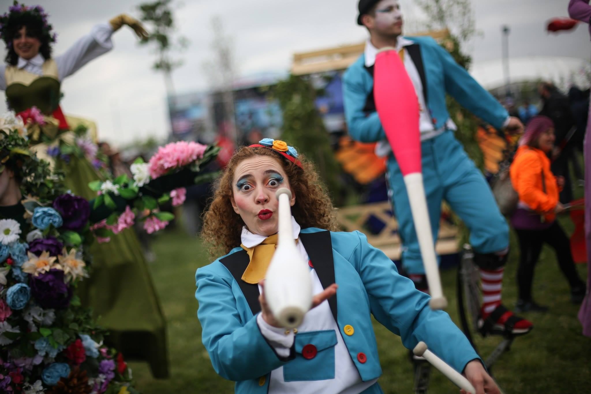 當?shù)貢r間2023年5月5日,土耳其伊斯坦布爾,民眾舉行迎春慶?;顒?。視覺中國
