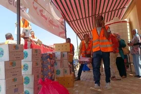 5月2日,在埃及南部阿斯旺省,工作人員為逃離蘇丹進入埃及的難民準(zhǔn)備物資(手機拍攝)。新華社發(fā)(拉德萬攝)