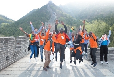 4月17日,非洲青年代表在北京居庸關長城合影留念。中國宋慶齡基金會供圖