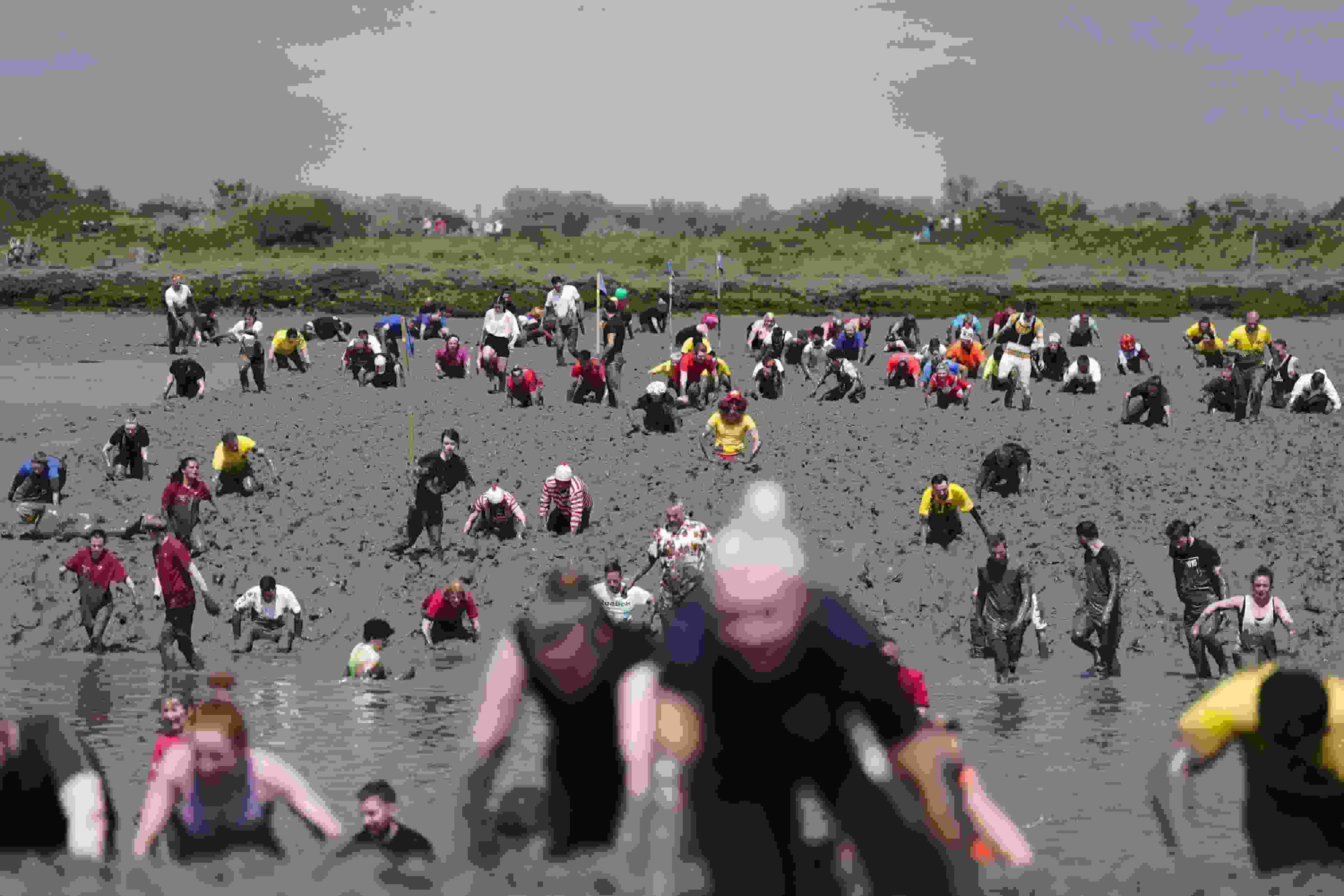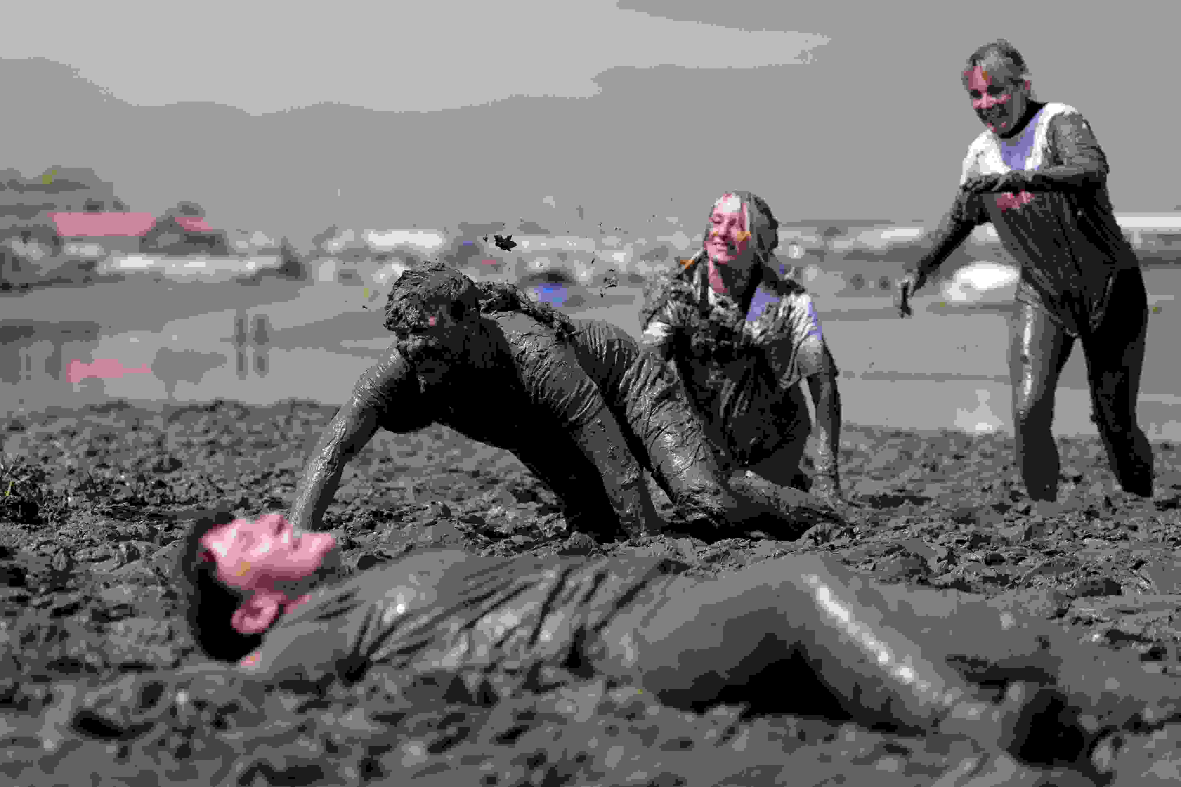 英國(guó)莫爾登上演年度“滾泥巴大賽”
