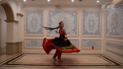 “左旋右轉(zhuǎn)不知疲,千匝萬周無已時。人間物類無可比,奔車輪緩旋風(fēng)遲。”充滿活力的跳躍和旋轉(zhuǎn)是胡旋舞最顯著的特征。而經(jīng)過千年的融合與傳承,這一元素已深深融入到中國和中亞國家多種舞蹈形式當(dāng)中。