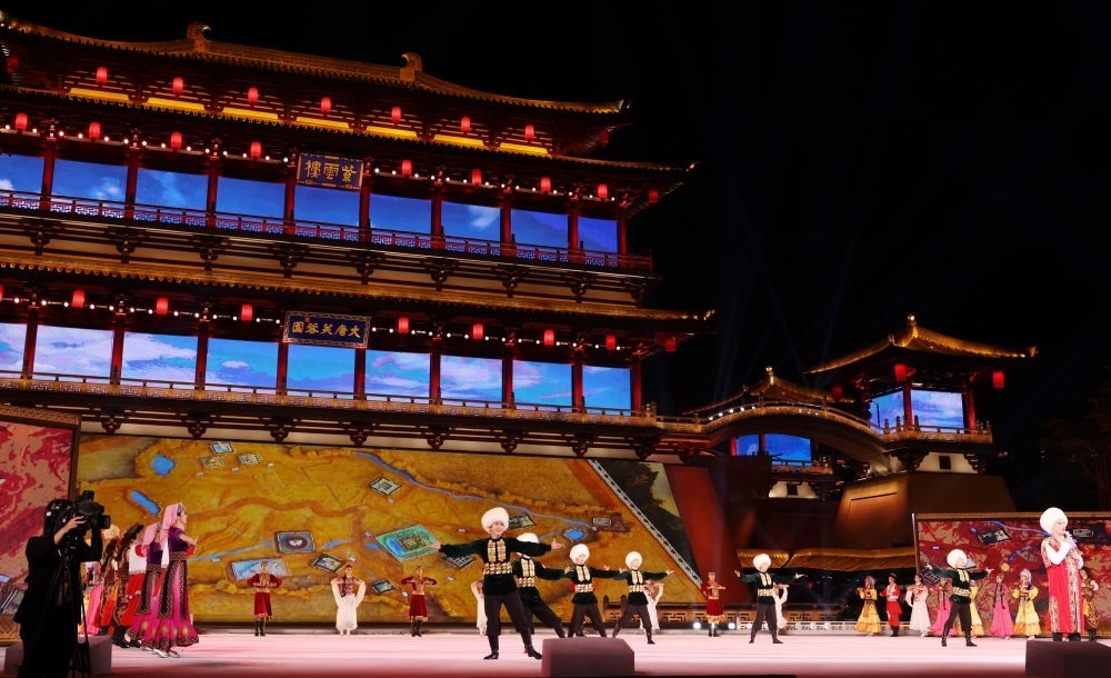 宴會后,習(xí)近平夫婦同貴賓們共同觀看中國同中亞國家人民文化藝術(shù)年暨中國-中亞青年藝術(shù)節(jié)開幕式演出。
