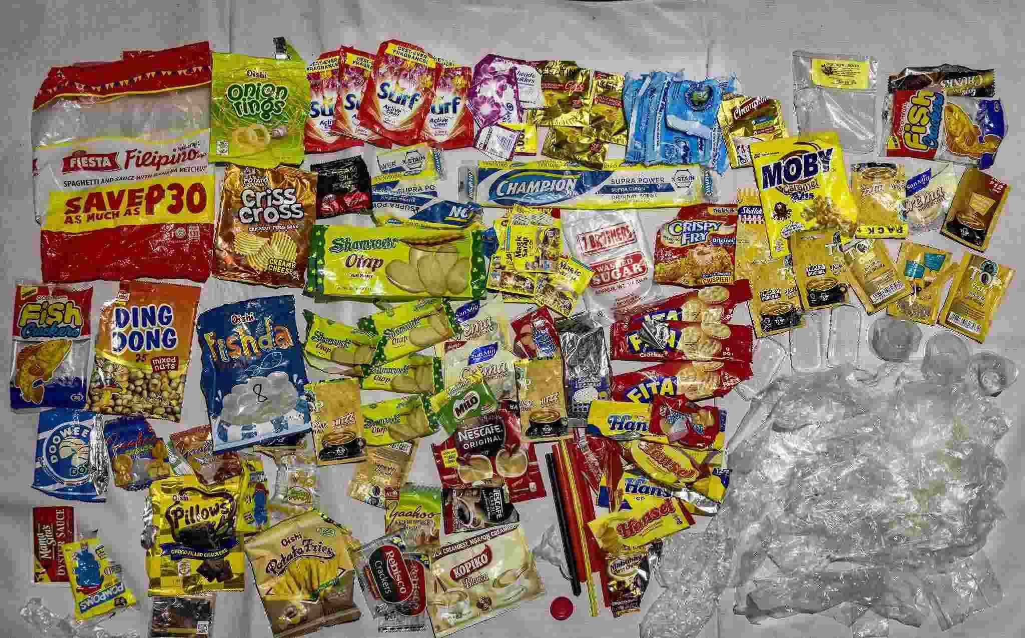 當?shù)貢r間2023年4月20日,菲律賓馬尼拉,奎松市,Mercado家在一周內(nèi)產(chǎn)生的塑料垃圾。