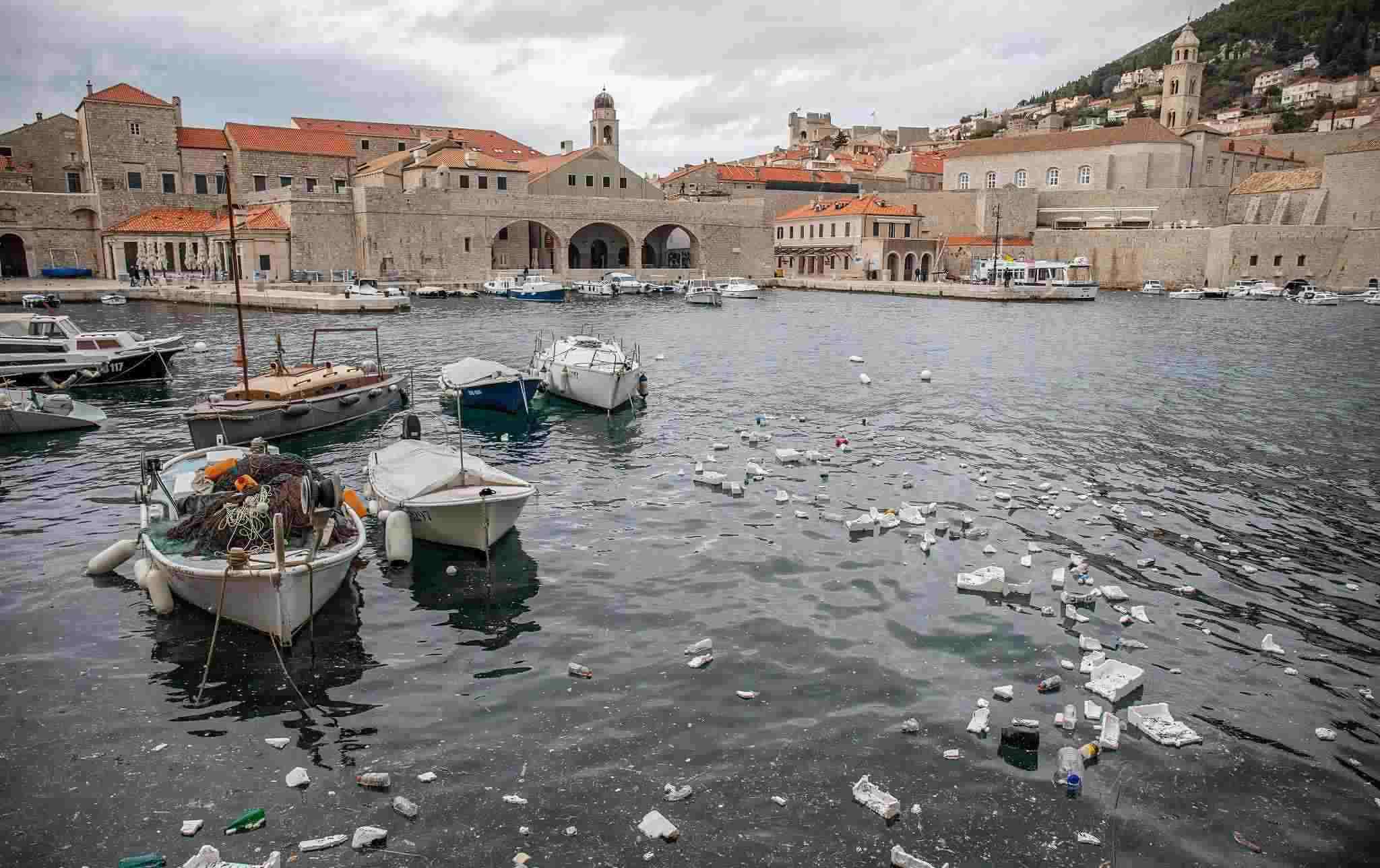 當?shù)貢r間2023年2月27日,克羅地亞杜布羅夫尼克,大風(fēng)過后,塑料垃圾漂浮在舊城港口。