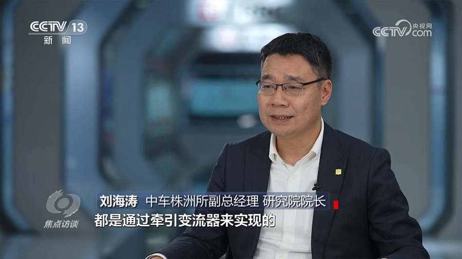 中車株洲所副總經(jīng)理、研究院院長劉海濤:“在高鐵車窗上擺一枚硬幣,這枚硬幣在高鐵300公里時(shí)速運(yùn)行工況下依然非常平穩(wěn)。過程中的加減速以及恒速控制,都是通過牽引變流器實(shí)現(xiàn)的?!?/p>