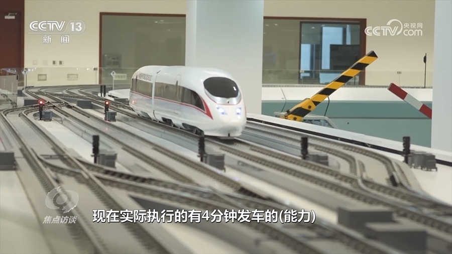 中國通號研究設(shè)計(jì)院集團(tuán)副總工程師江明:“我們要保證所有的車在一條線路上能夠安全,同時(shí)又比較密集地運(yùn)行。我們可以實(shí)時(shí)知道現(xiàn)在車所在的位置,同時(shí)還能知道車現(xiàn)在的速度。經(jīng)過這么多年的努力,現(xiàn)在實(shí)際執(zhí)行的有4分鐘發(fā)車的能力。”