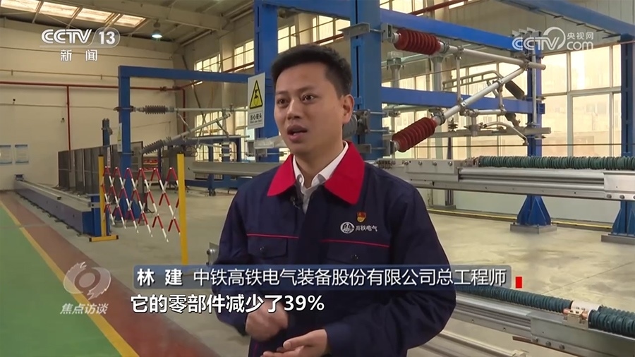 中鐵高鐵電氣裝備股份有限公司總工程師林建:“簡統(tǒng)化腕臂裝置相對于傳統(tǒng)的鋁合金三角腕臂裝置來說,它的零部件減少了39%,在運(yùn)營過程中,在同等滿足系統(tǒng)使用要求情況下,零部件越少,故障率越小,安全可靠性就會更高?!?/p>