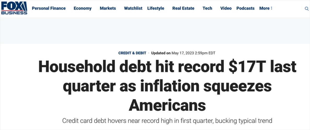 “通脹榨干了美國人,”對此,美國??怂剐侣劸W(wǎng)報道稱,“自2023年伊始,美國人的債臺更加高筑,有越來越多的美國家庭拖欠貸款?!?/p>