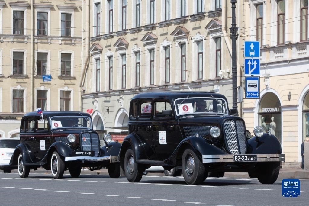 這是5月20日在俄羅斯圣彼得堡街頭拍攝的老爺車。   新華社發(fā)(莫京娜攝)