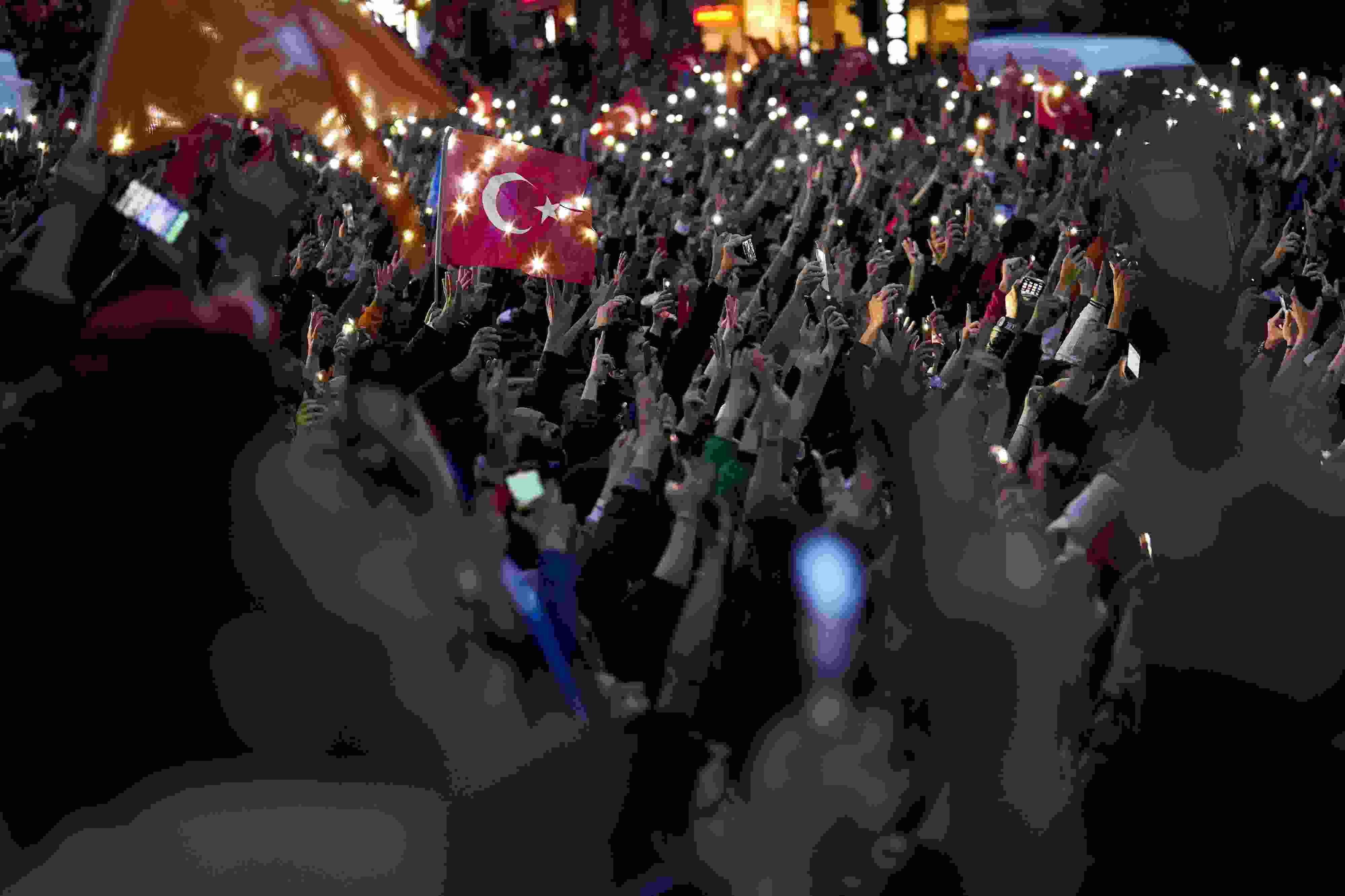 當(dāng)?shù)貢r(shí)間2023年5月28日,土耳其伊斯坦布爾,埃爾多安的支持者慶祝其再次當(dāng)選土耳其總統(tǒng)。土耳其最高選舉委員會(huì)主席艾哈邁德·耶內(nèi)爾28日深夜在首都安卡拉宣布,根據(jù)初步計(jì)票結(jié)果,現(xiàn)任總統(tǒng)埃爾多安在28日舉行的總統(tǒng)選舉第二輪投票中戰(zhàn)勝對手,再次當(dāng)選總統(tǒng)。 視覺中國