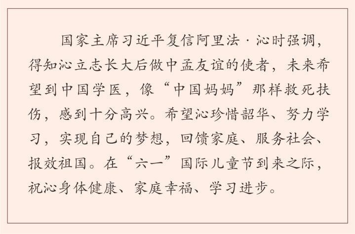 2019年,沁出生9年后和家人第一次來(lái)到中國(guó),她和父母一起登上“和平方舟”號(hào)醫(yī)院船。當(dāng)看到等候在這里的盛睿芳時(shí),沁馬上跑上前去拉起她的手:“你好,中國(guó)媽媽?zhuān) ?/p>
