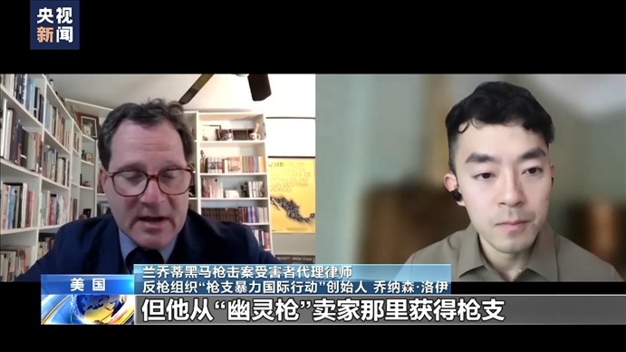 蘭喬蒂黑馬槍擊案受害者代理律師、反槍組織“槍支暴力國(guó)際行動(dòng)”創(chuàng)始人 喬納森·洛伊:兇手本來(lái)不允許購(gòu)買和擁有槍支,因?yàn)樗蟹缸镉涗?,但他從“幽靈槍”賣家那里獲得槍支,從而瘋狂殺人。