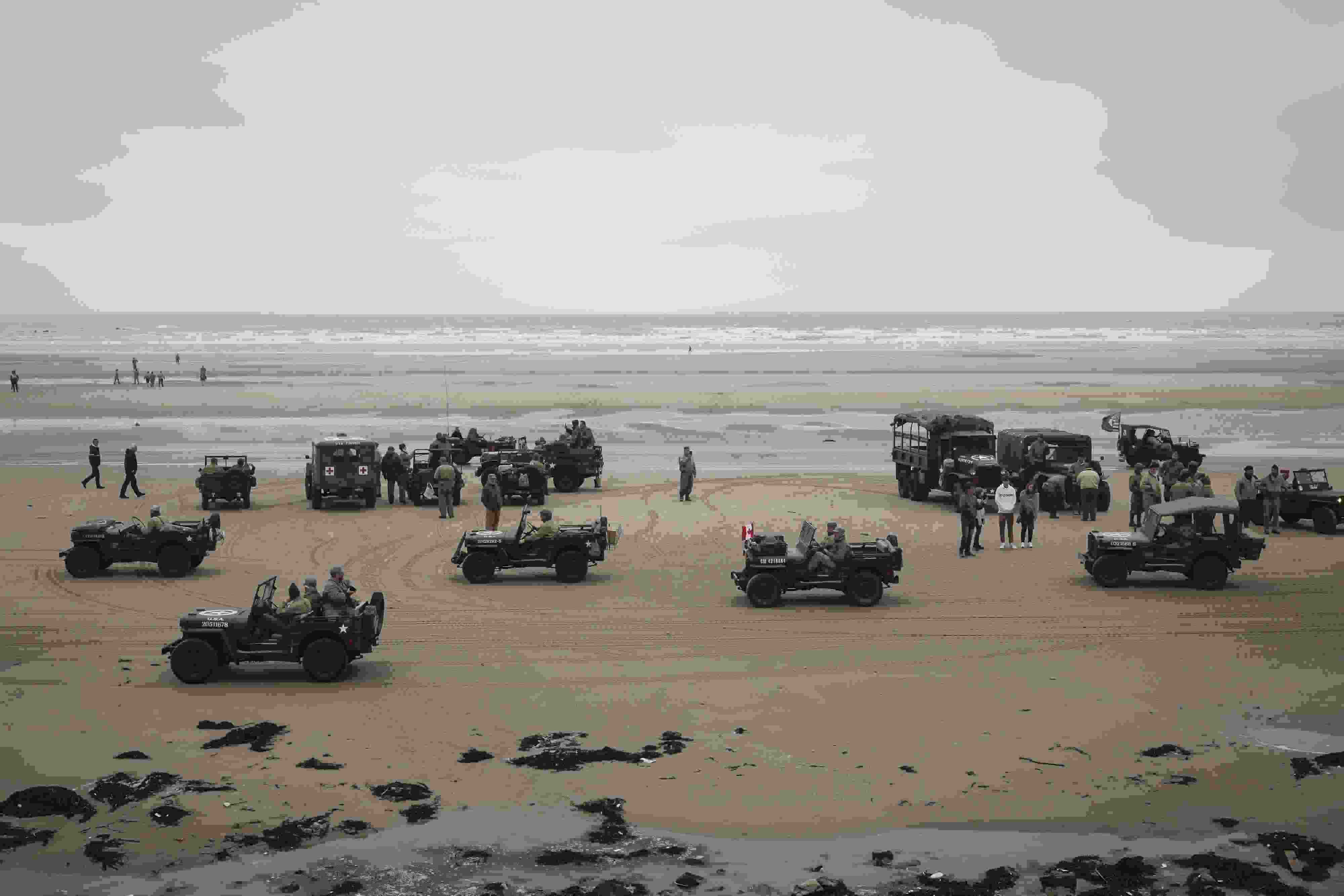 當(dāng)?shù)貢r(shí)間2023年6月6日,法國(guó)奧馬哈海灘,人們重現(xiàn)戰(zhàn)爭(zhēng)場(chǎng)景紀(jì)念諾曼底登陸。1944年6月6日黎明時(shí)分,近16萬(wàn)盟軍在諾曼底登陸。 視覺(jué)中國(guó)