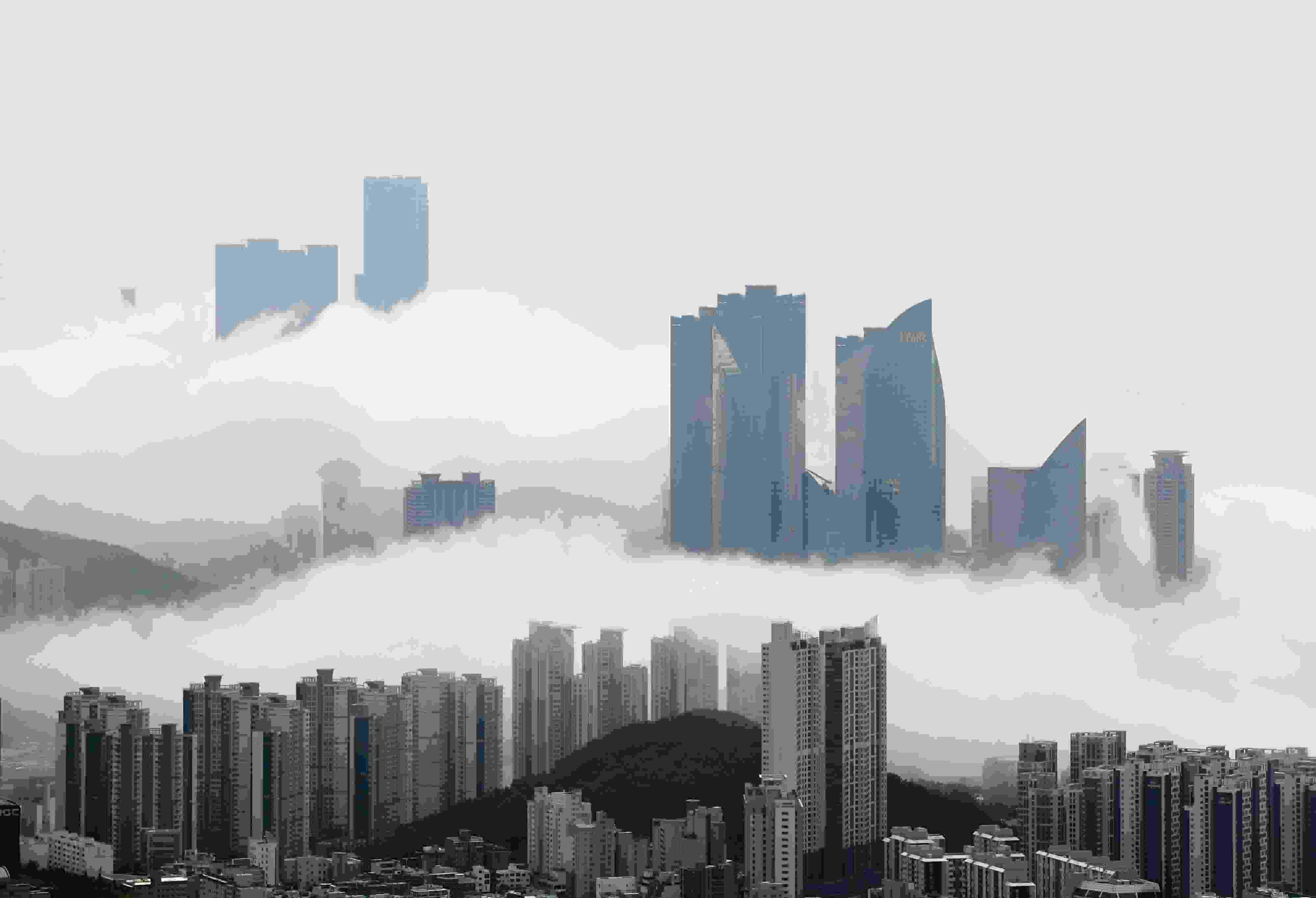 當(dāng)?shù)貢r(shí)間2023年6月12日,韓國釜山,廣安大橋一帶海霧彌漫,蔚為壯觀。 視覺中國