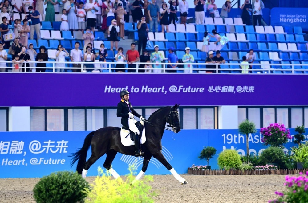 “今天對我來說太重要了,我的妻子、孩子在場邊目睹了這一刻,這是一場永遠(yuǎn)值得回憶的比賽。我等這枚金牌已經(jīng)25年了,以前我只獲得過銅牌和銀牌。”安巴克不僅實現(xiàn)了個人突破,也贏得了馬來西亞馬術(shù)項目的第一塊亞運金牌。