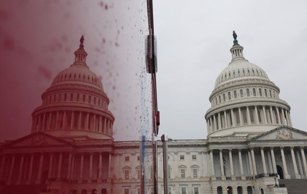 這張2018年12月28日拍攝的資料照片顯示,在美國(guó)華盛頓,國(guó)會(huì)大廈映在一輛汽車上。新華社記者劉杰攝