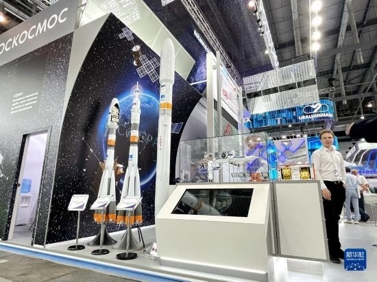 7月10日,運(yùn)載火箭模型在俄羅斯葉卡捷琳堡市舉行的國際創(chuàng)新工業(yè)展上展出。新華社記者黃河攝