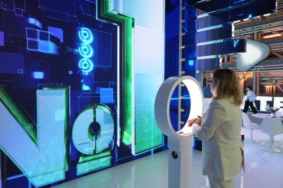 7月27日,在俄羅斯圣彼得堡,一名觀眾在俄非峰會會場體驗用手勢操控顯示屏。新華社記者安曉萌攝
