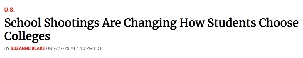 也是由于校園槍擊事件的日漸頻繁,美國學生選擇大學的方式也隨之發(fā)生變化。據(jù)美國《新聞周刊》(News Week)網(wǎng)站27日報道,僅在2023年,全美就發(fā)生了53起校園槍擊事件?!皹屩П┝n案”(Gun Violence Archive)的數(shù)據(jù)顯示,各類與槍支有關的死亡總共有3萬多起。
