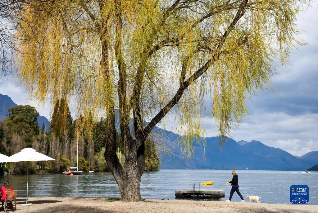 9月28日,一名女子在新西蘭南島昆斯敦的湖邊散步。 新華社記者 郭磊 攝