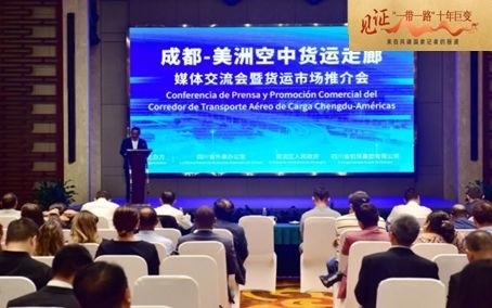 金秋時節(jié),巴西中北部傳媒集團記者拉妮利·維羅索專程赴成都,以現(xiàn)場直播形式報道中國和巴西新開通的國際貨運航線推介會,展示空運來華的拉美特色產(chǎn)品,并采訪巴西駐成都總領(lǐng)事、四川機場集團相關(guān)負(fù)責(zé)人。