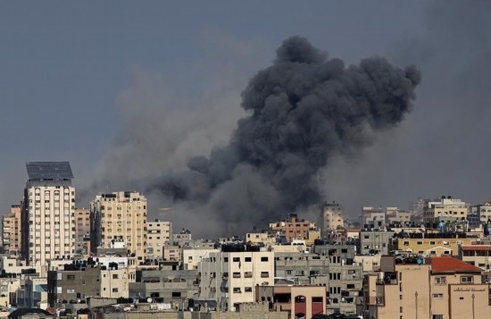 10月12日,加沙城的建筑遭以色列軍隊空襲后升起濃煙。新華社發(fā)(里澤克·阿卜杜勒賈瓦德攝)