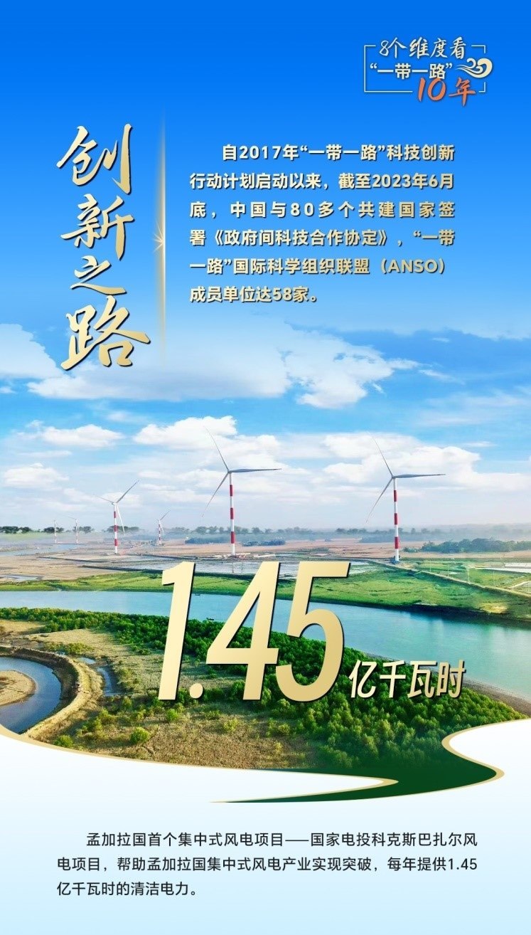 10年來,創(chuàng)新始終是一個關(guān)鍵詞,中國與共建國家加強科技創(chuàng)新合作,加速集聚創(chuàng)新資源,為共建“一帶一路”注入強勁動力。截至2023年6月底,中國與80多個共建國家簽署《政府間科技合作協(xié)定》,“一帶一路”國際科學組織聯(lián)盟(ANSO)成員單位達58家;2013年以來,中國支持逾萬名共建國家青年科學家來華開展短期科研工作和交流,累計培訓共建國家技術(shù)和管理人員1.6萬余人次;累計幫助50多個非洲國家建成20多個農(nóng)業(yè)技術(shù)示范中心,在農(nóng)業(yè)、新能源、衛(wèi)生健康等領(lǐng)域啟動建設(shè)50余家“一帶一路”聯(lián)合實驗室。