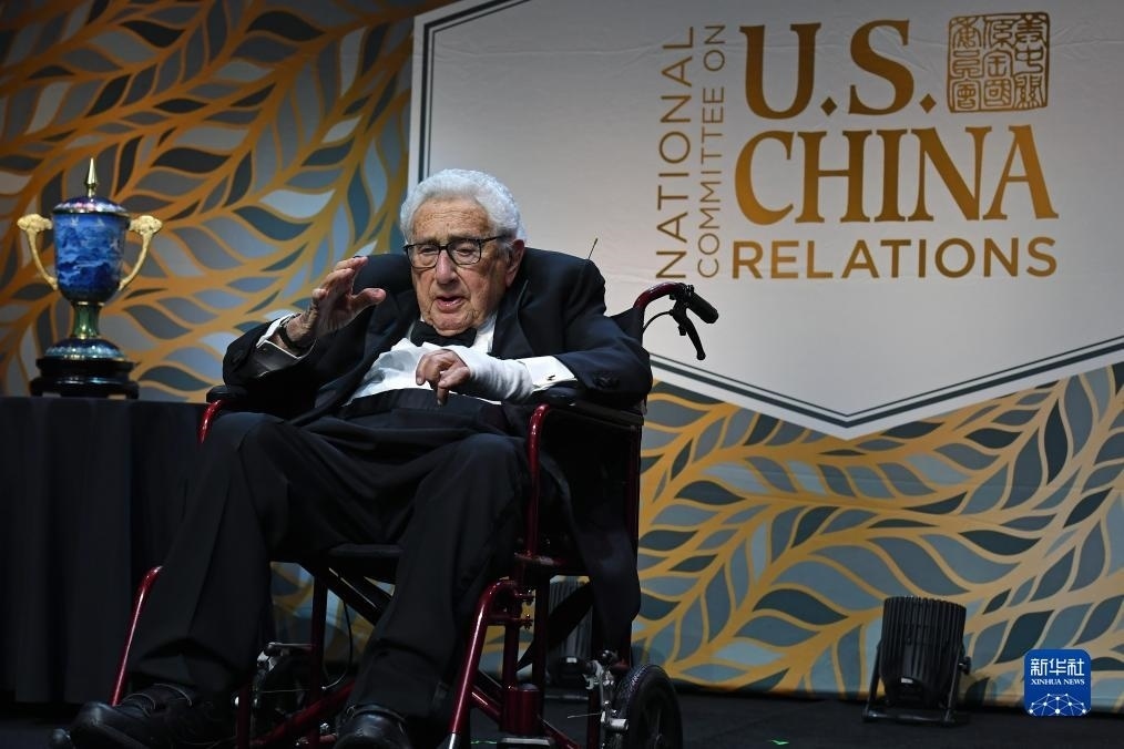 百歲高齡的基辛格在接受頒獎(jiǎng)時(shí),全場(chǎng)嘉賓報(bào)以持久熱烈掌聲。他在獲獎(jiǎng)致辭中說,“我一生中一半時(shí)間都在為美中關(guān)系工作”,美中之間的和平與合作至關(guān)重要,符合兩國和世界的利益。