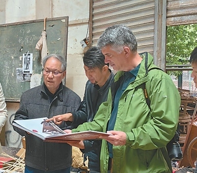 2023年5月,希臘佩特雷大學教授康托斯(右)在中國西南大學美術學院參觀交流。
