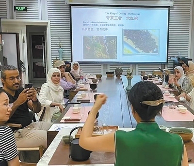 2023年7月,沙特中文學習者那丹(左三)在北京語言大學體驗中國茶文化。以上圖片均為受訪者提供