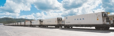 冷藏貨運(yùn)班列駛?cè)胫袊ズ╄F路口岸。