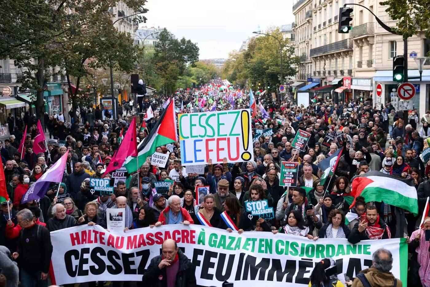 當?shù)貢r間11日,民眾在法國巴黎參加支持巴勒斯坦游行 圖源:《衛(wèi)報》