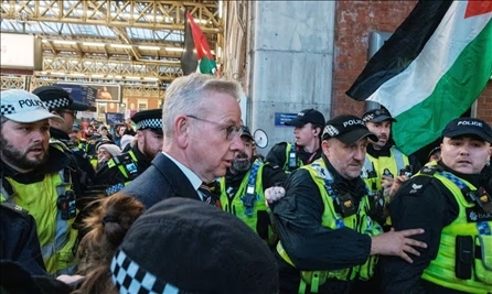 關于此次在倫敦抗議活動的規(guī)模,《衛(wèi)報》具體稱,英國內(nèi)閣大臣邁克爾·戈夫當天一度在倫敦維多利亞車站被親巴勒斯坦抗議者“圍攻”。此外,在另一段視頻中,戈夫在倫敦街道上行走時,抗議者跟著他高喊“你真可恥”。