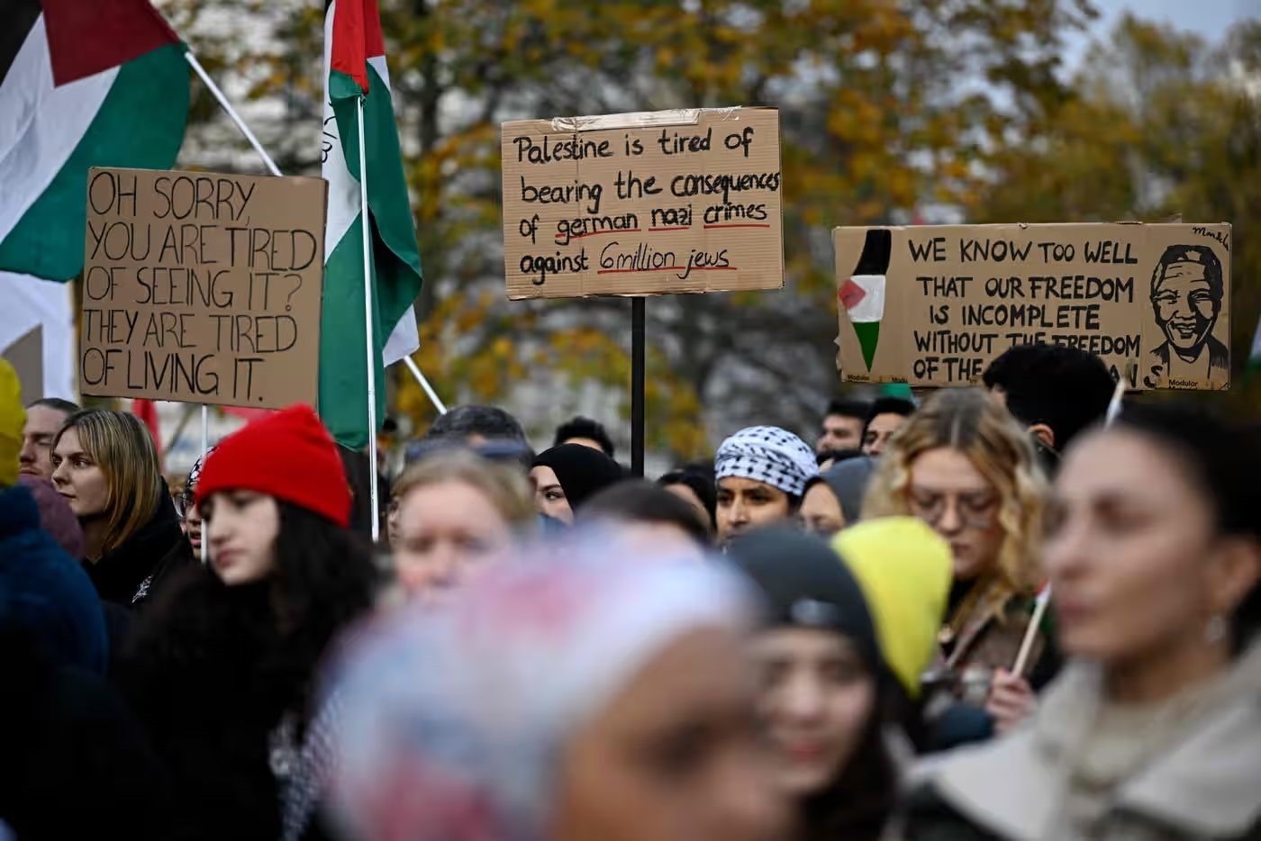 當?shù)貢r間11日,民眾在德國柏林參加支持巴勒斯坦游行 圖源:《衛(wèi)報》