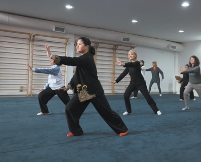 中國(guó)武術(shù)廣為世界所知,越來(lái)越多的外國(guó)友人愛(ài)上“中國(guó)功夫”,太極拳也被列入聯(lián)合國(guó)非物質(zhì)文化遺產(chǎn)名錄。圖為今年9月,在位于阿根廷首都布宜諾斯艾利斯的阿根廷公民武術(shù)俱樂(lè)部?jī)?nèi),中國(guó)教練正在帶領(lǐng)學(xué)員練習(xí)太極拳。