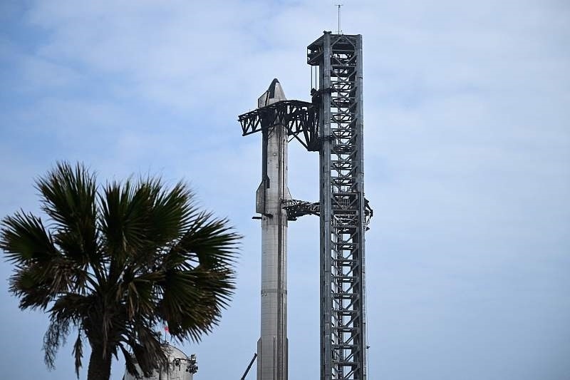 △當(dāng)?shù)貢r(shí)間4月19日,準(zhǔn)備進(jìn)行首次軌道試飛的“星艦”。