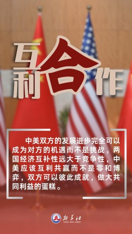 中美雙方的發(fā)展進步完全可以成為對方的機遇而不是挑戰(zhàn),兩國經(jīng)濟互補性遠大于競爭性,中美應該互利共贏而不是零和博弈,雙方可以彼此成就,做大共同利益的蛋糕。