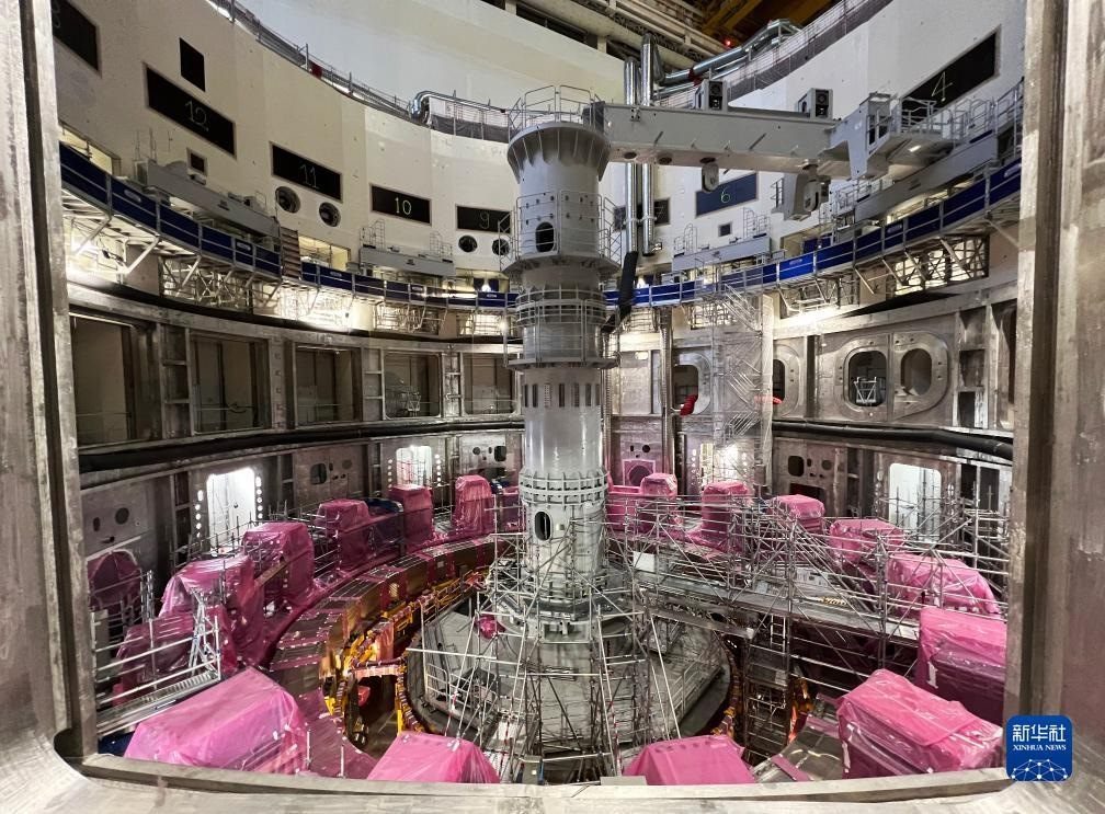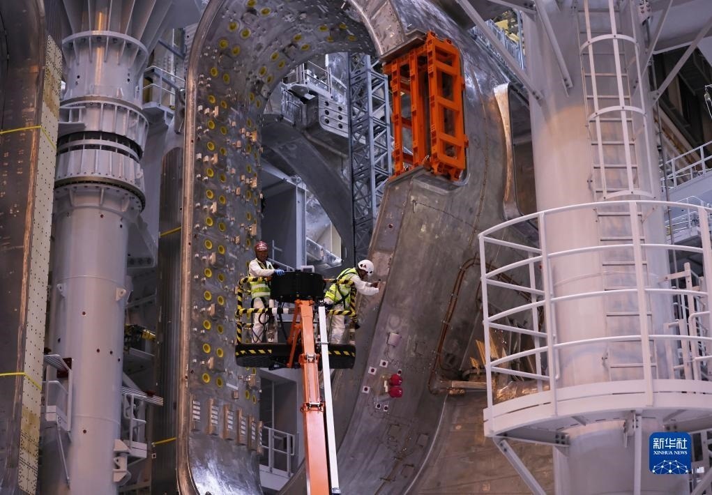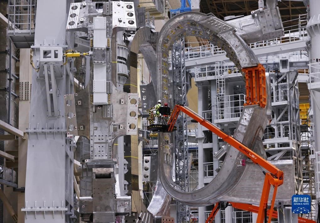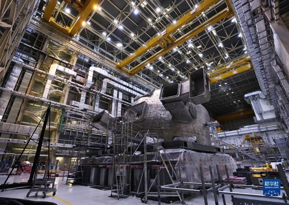 ?這是11月23日在位于法國圣保羅-萊迪朗斯的國際熱核聚變實(shí)驗(yàn)反應(yīng)堆(ITER)建設(shè)現(xiàn)場拍攝的安裝中的托卡馬克裝置。新華社記者 高靜 攝