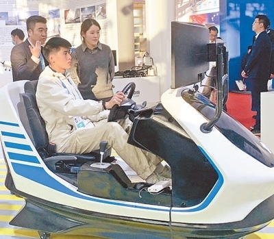 工作人員在展示遠(yuǎn)程駕駛平臺(tái)。本報(bào)記者 施 芳攝