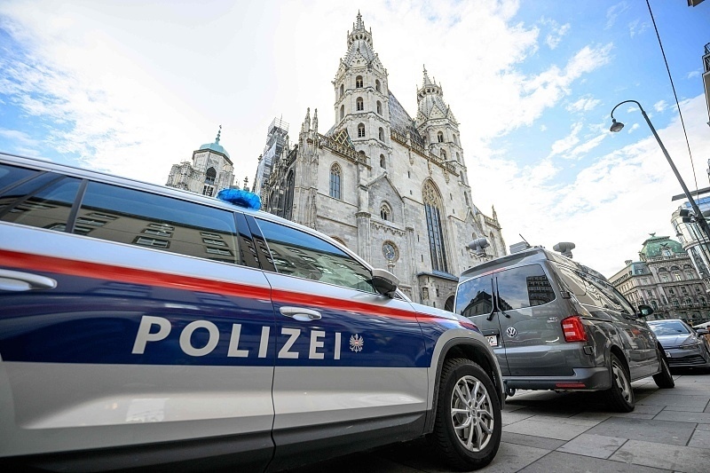 24日,一輛警車停在奧地利維也納的斯蒂芬主教座堂附近。