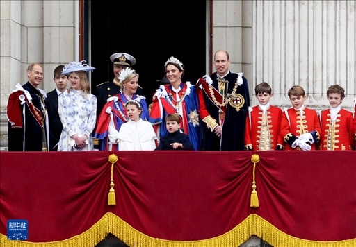 2023年5月6日,凱特王妃(中)在英國(guó)倫敦參加英國(guó)國(guó)王查爾斯三世的加冕儀式后,在白金漢宮陽(yáng)臺(tái)上與民眾見面(資料照片)。新華社記者 李穎 攝